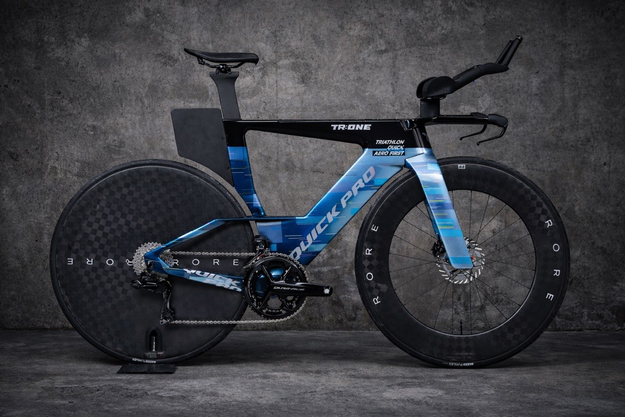 Главный акцент нашей экспозиции — Quick Pro TR:ONE, современный велосипед для триатлона и гонок с раздельным стартом. Эта модель создавалась с фокусом не на формальные показатели отдельно взятой рамы, а на практическую эффективность системы «велосипед + спортсмен» в реальной гоночной посадке. В разработке TR:ONE принимал участие Rolf Singenberger, много лет возглавлявший направление исследований и разработок в BMC. Испытания модели проводились в аэродинамической трубе Silverstone, в том числе с участием спортсменов, чтобы оценить не только форму рамы, но и устойчивость позиции, обтекание тела и фактическую эффективность в рабочих условиях.