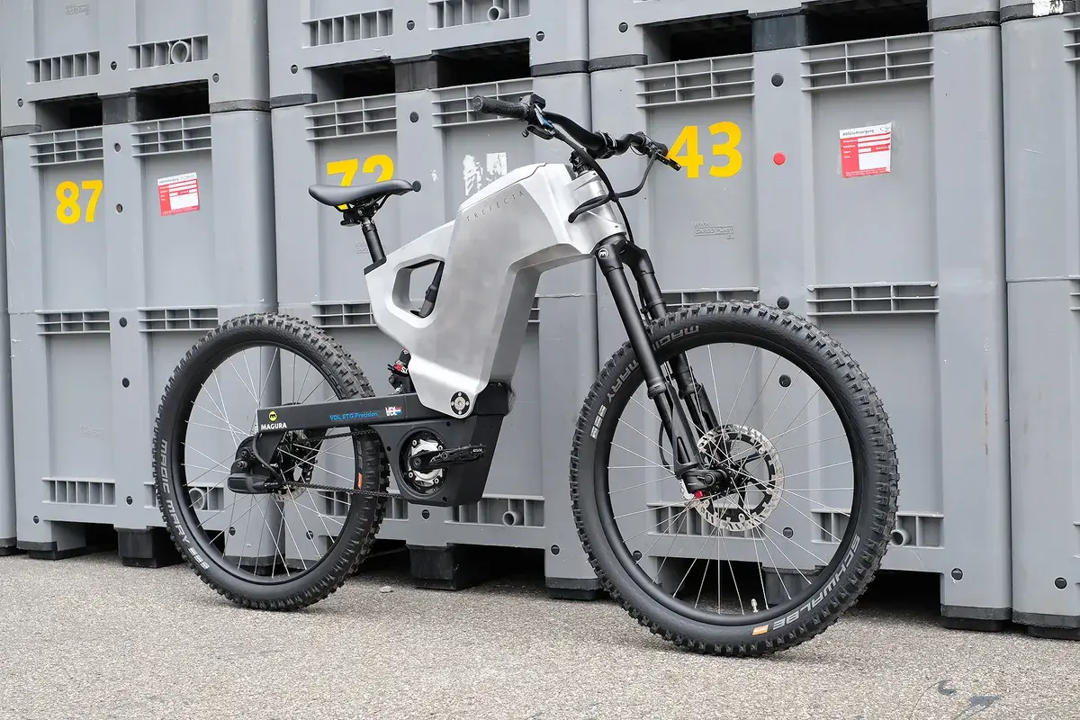 Создатели позиционируют байк как универсальный: мол, он подходит и для ежедневных поездок по городу, и для езды вне дорог. На что обратить внимание? На массивную алюминиевую раму, электромотор с крутящим моментом 120 Н•м и первую в мире велосипедную АБС, которая предотвращает блокировку переднего колеса и отрыв от земли заднего во время торможения